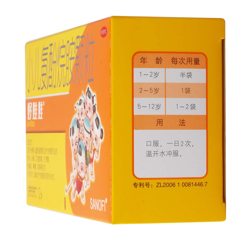 - 用法用量:口服。1~2岁儿童:一次半袋;2~5岁:一次1袋;5~12岁:一次1~2袋;一日2次。温开水冲服。