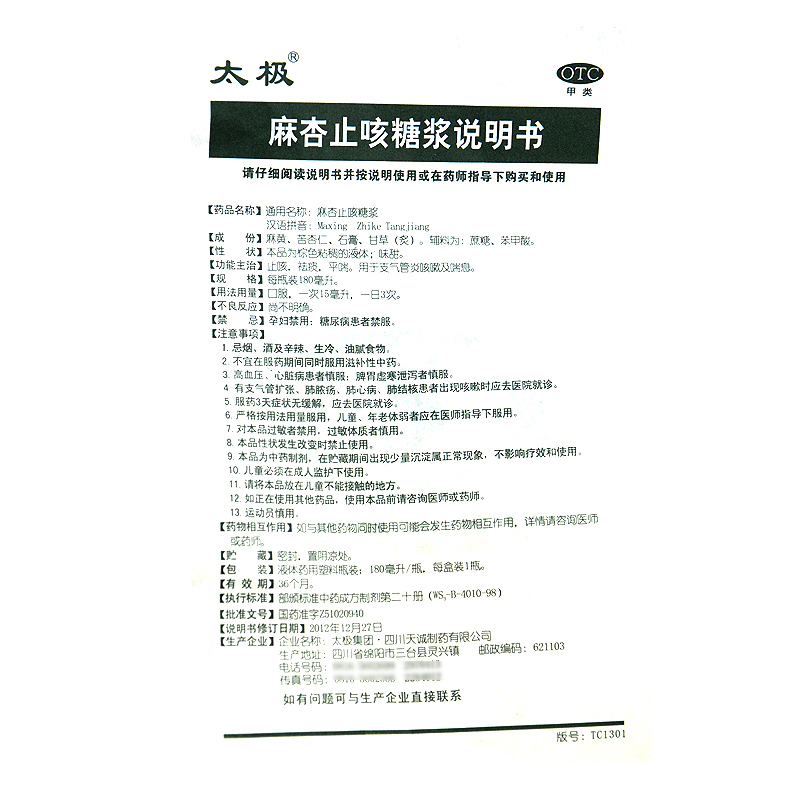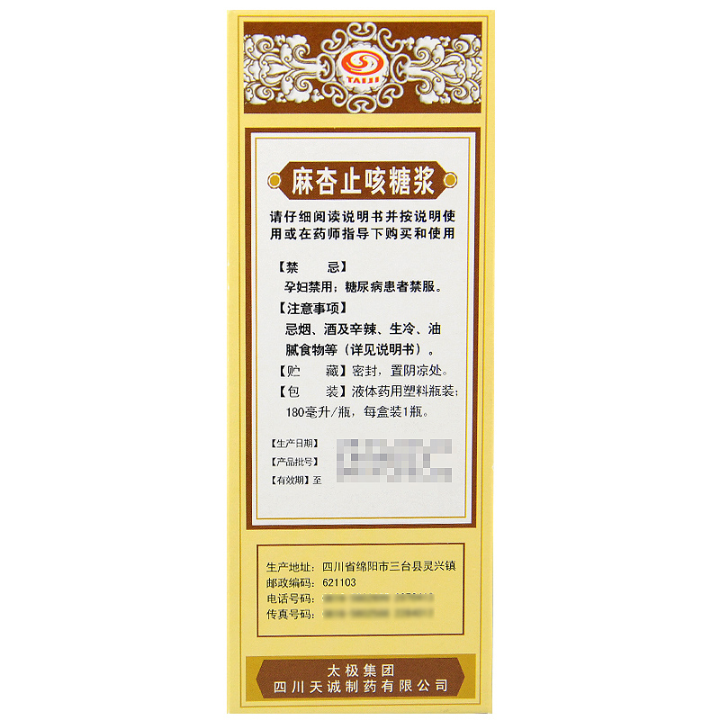 麻杏止咳糖浆(太极)