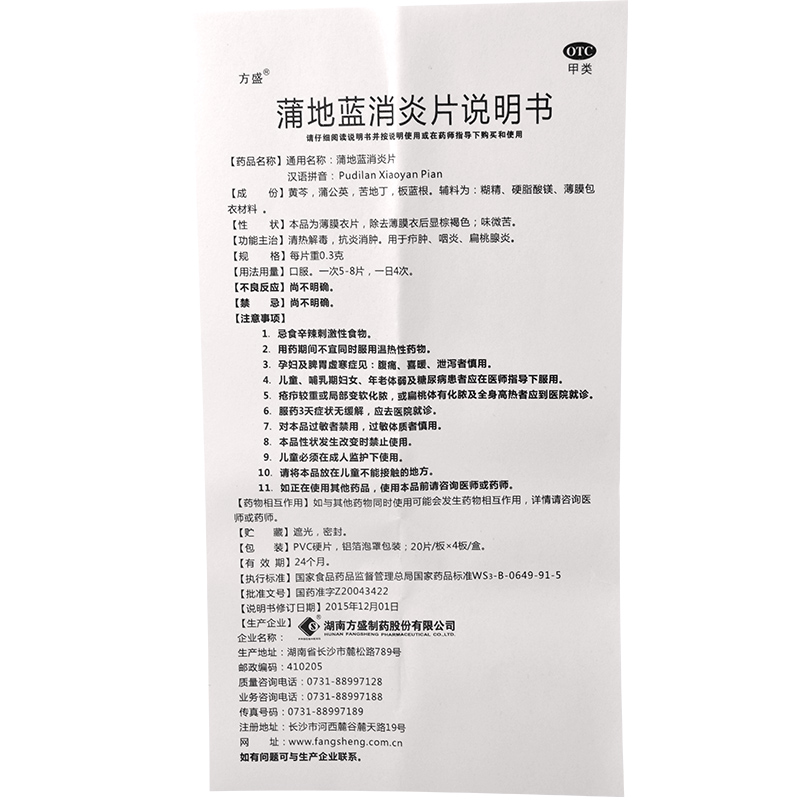 - 商品名称:方盛 蒲地蓝消炎片 0.3g *20片*4板/盒