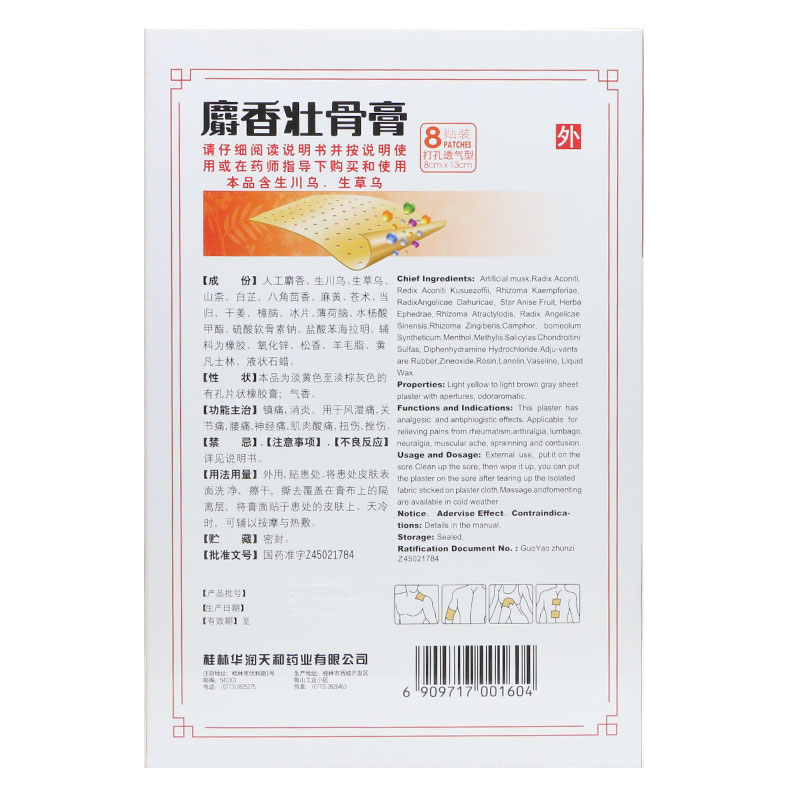 - 商品名称:天和 麝香壮骨膏 8cm*13cm*8贴/盒