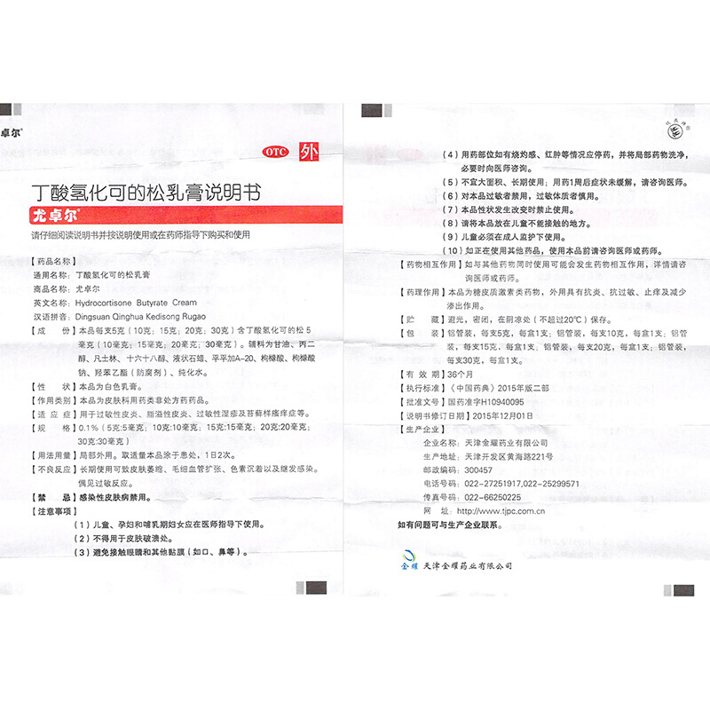 - 通用名称:丁酸氢化可的松乳膏(尤卓尔)