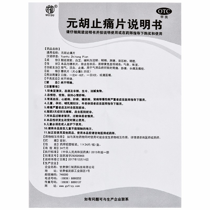 元胡止痛片