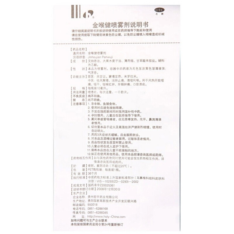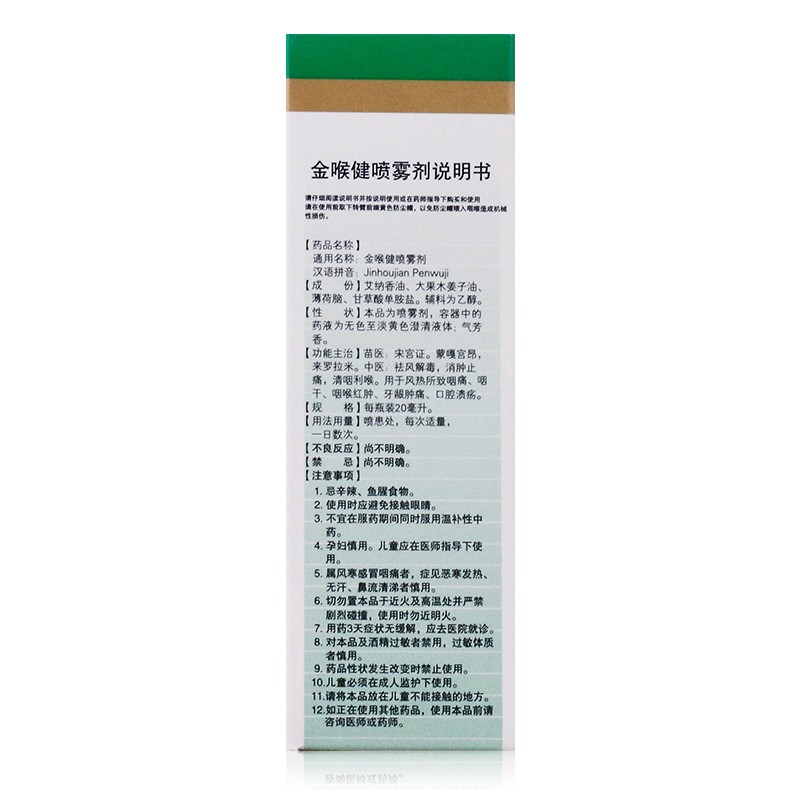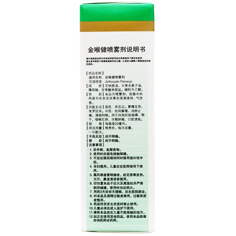 - 商品名称:宏宇 金喉健喷雾剂 20ml/瓶