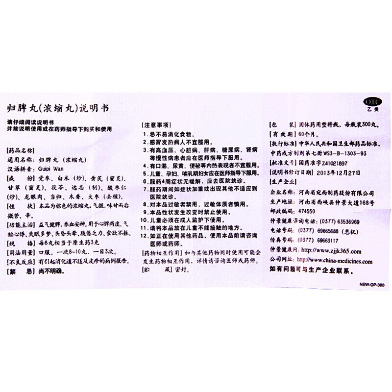 • 商品名称:仲景 归脾丸 浓缩丸 300丸 /盒