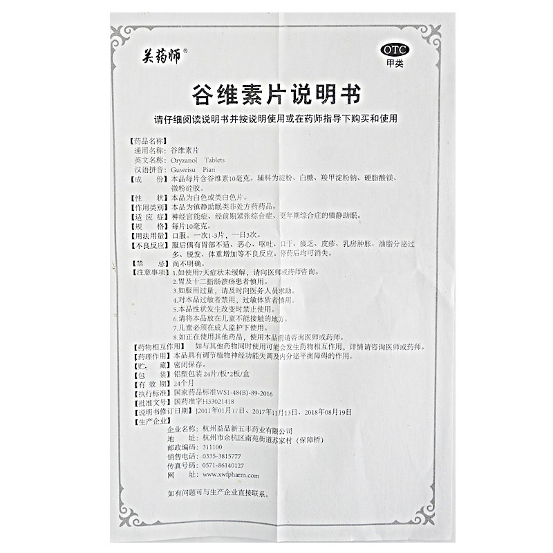 - 商品名称:关药师 谷维素片 10mg*24片*2板