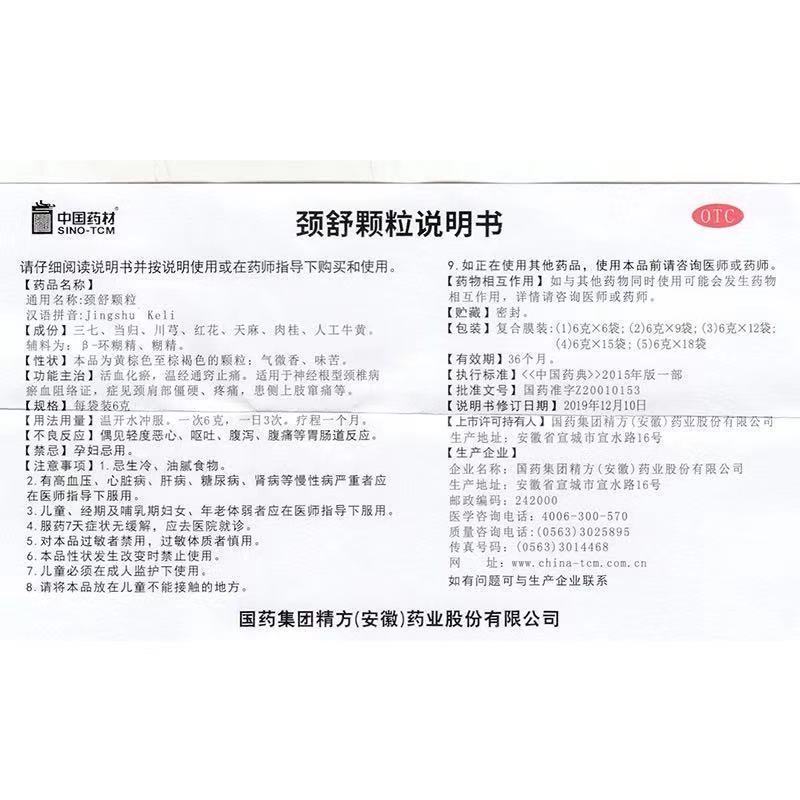 - 商品名称:中国药材 颈舒颗粒 6克*9袋