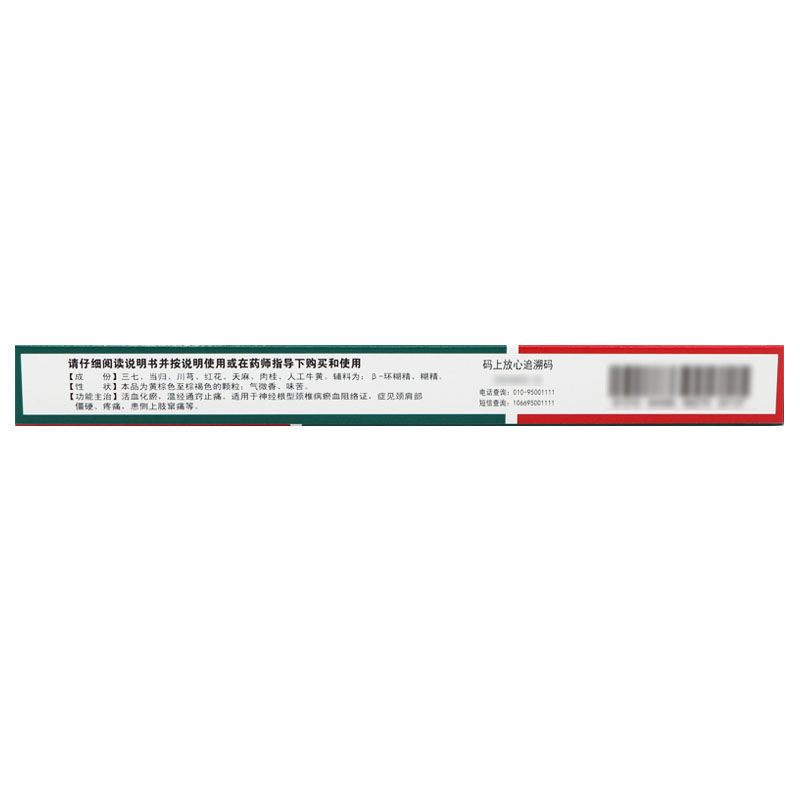 - 适应症/功能主治:活血化瘀,温经通窍止痛。适用于神经根型颈椎病瘀血阻络证,症见颈肩部僵硬、疼痛,患侧上肢窜痛等。