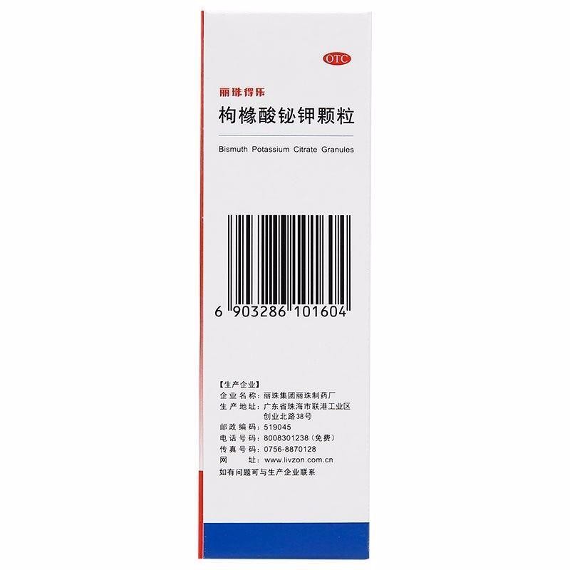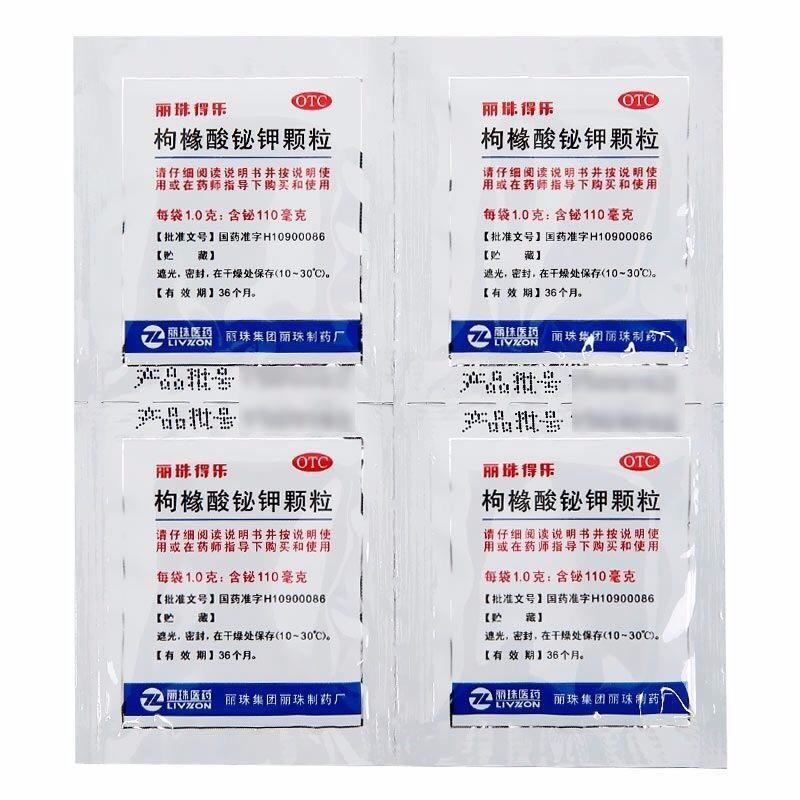 - 通用名称:丽珠得乐(枸橼酸铋钾颗粒)