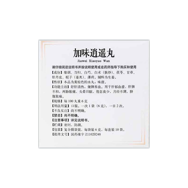 - 通用名称:加味逍遥丸