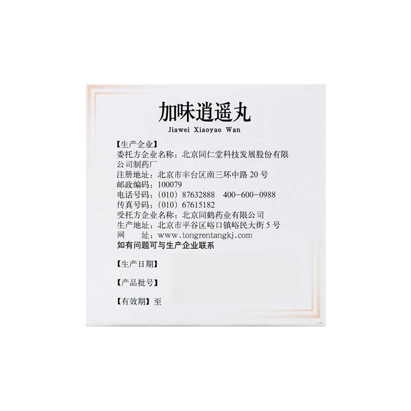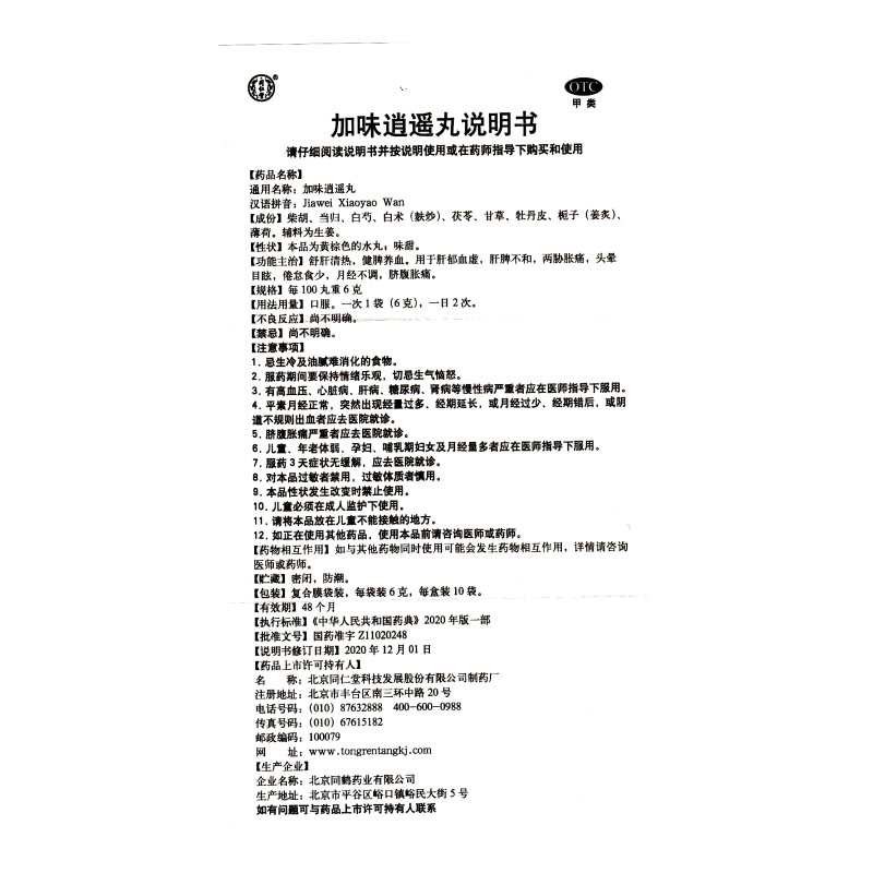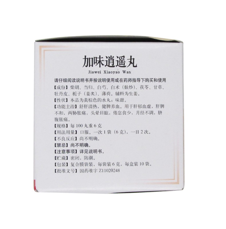 - 商品名称:同仁堂 加味逍遥丸 6g*10袋/盒