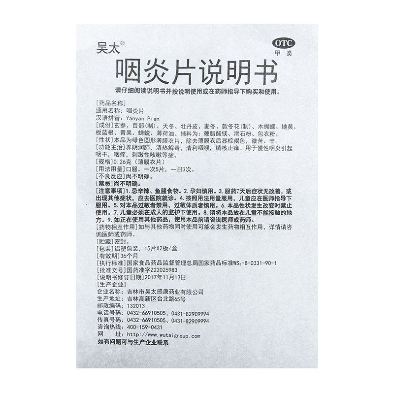 - 适应症/功能主治:养阴润肺,清热解毒,清利咽喉,镇咳止痒。用于慢性咽炎引起的咽干,咽痒,刺激性咳漱。
