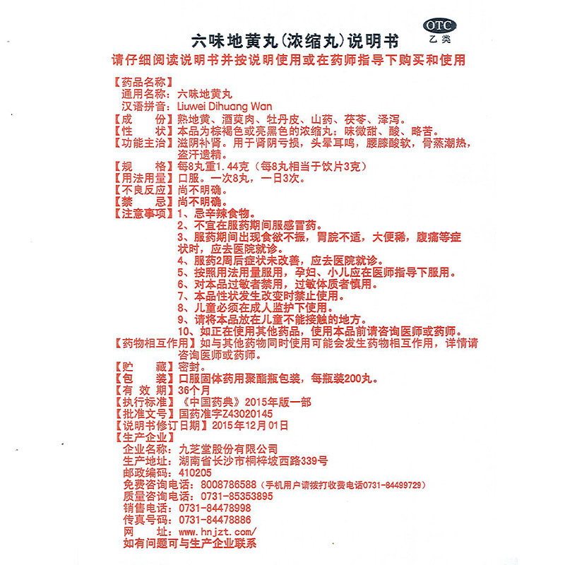 - 商品名称:九芝堂 六味地黄丸 200丸/瓶