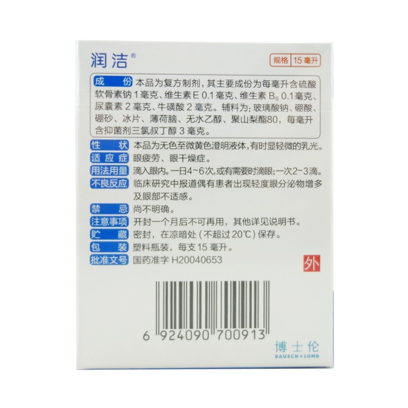 - 商品名称:润洁 复方硫酸软骨素滴眼液 15ml/瓶