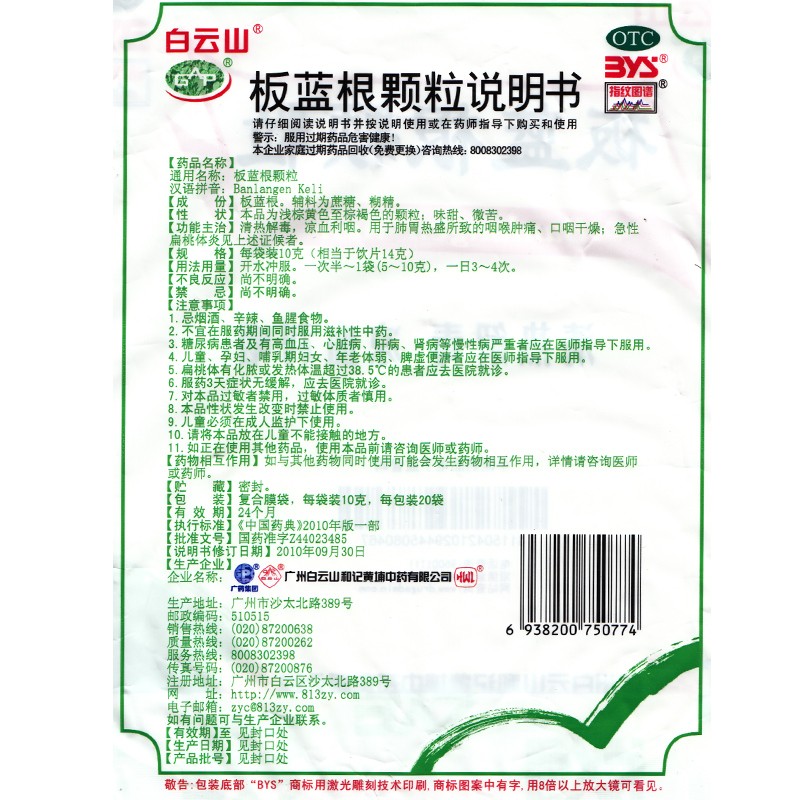 - 商品名称:白云山 板蓝根颗粒 10g*20袋/包