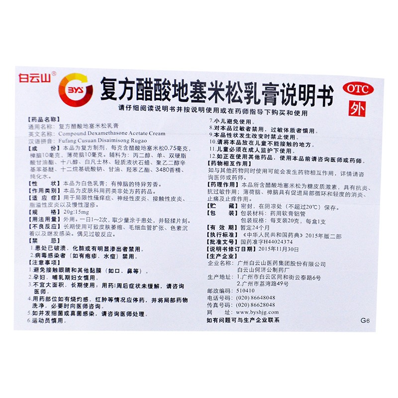 - 商品名称:白云山 复方醋酸地塞米松乳膏 20g/支