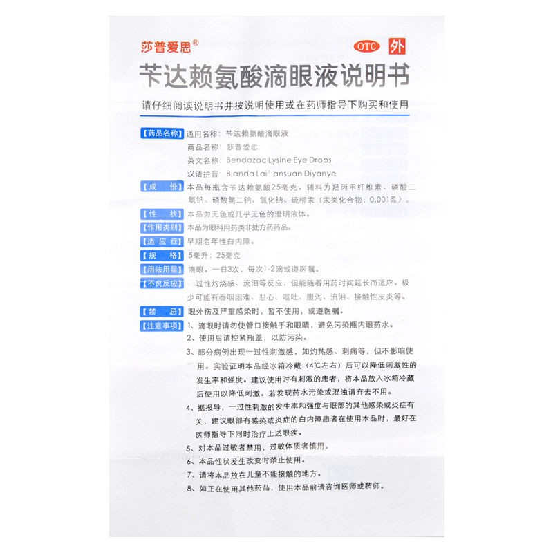 - 商品名称:莎普爱思 苄达赖氨酸滴眼液 5ml/瓶
