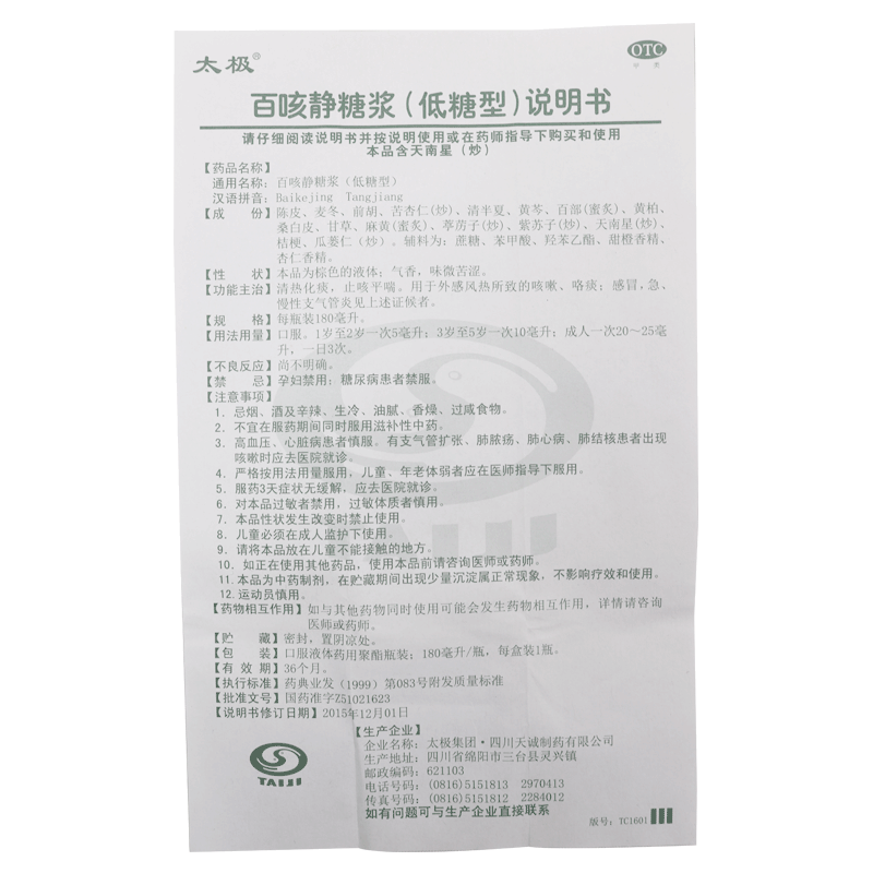 百咳静糖浆(低糖型)