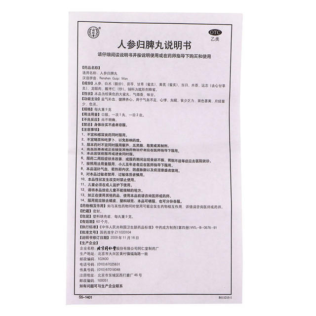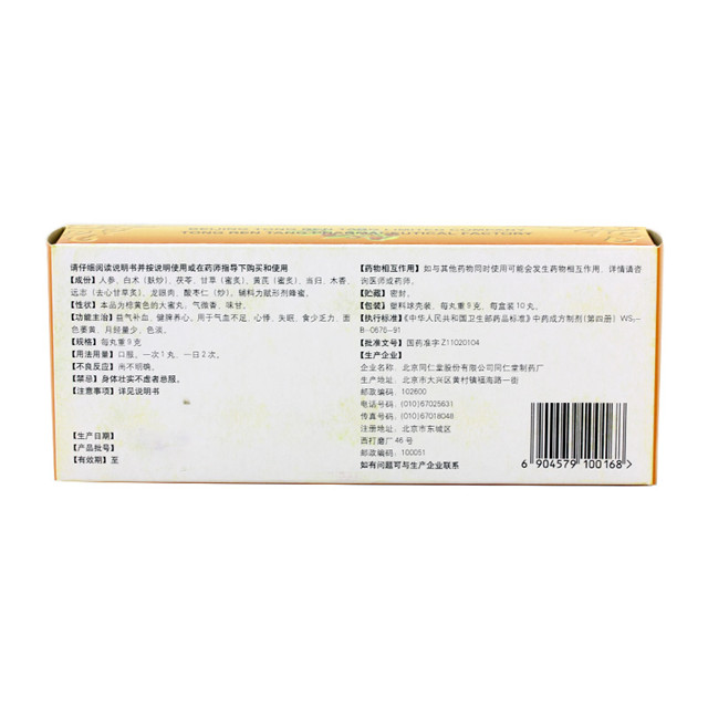- 商品名称:同仁堂 人参归脾丸 9g*10s