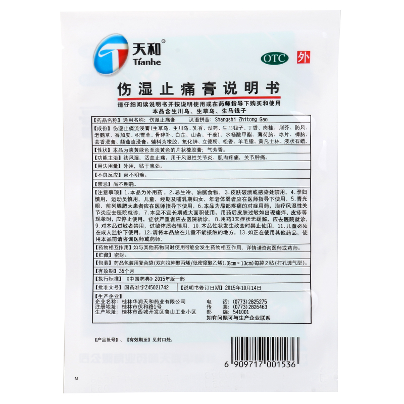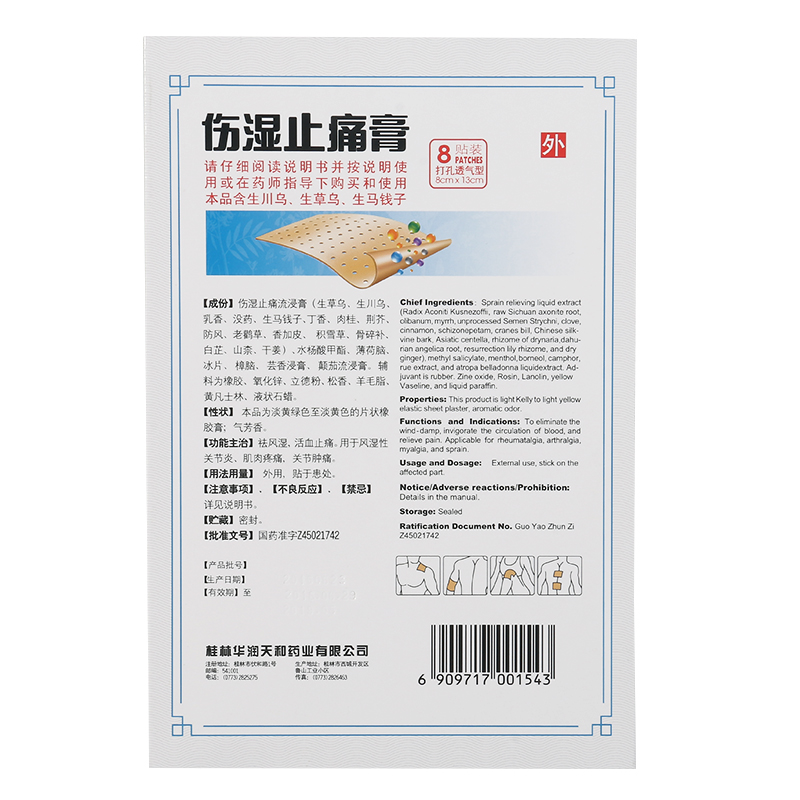 - 商品名称:天和 伤湿止痛膏 8*13cm*8贴/盒