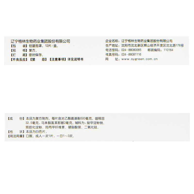 - 生产企业:辽宁格林生物药业集团股份有限公司
