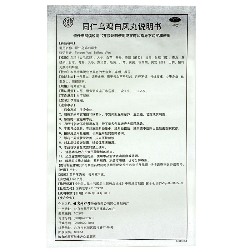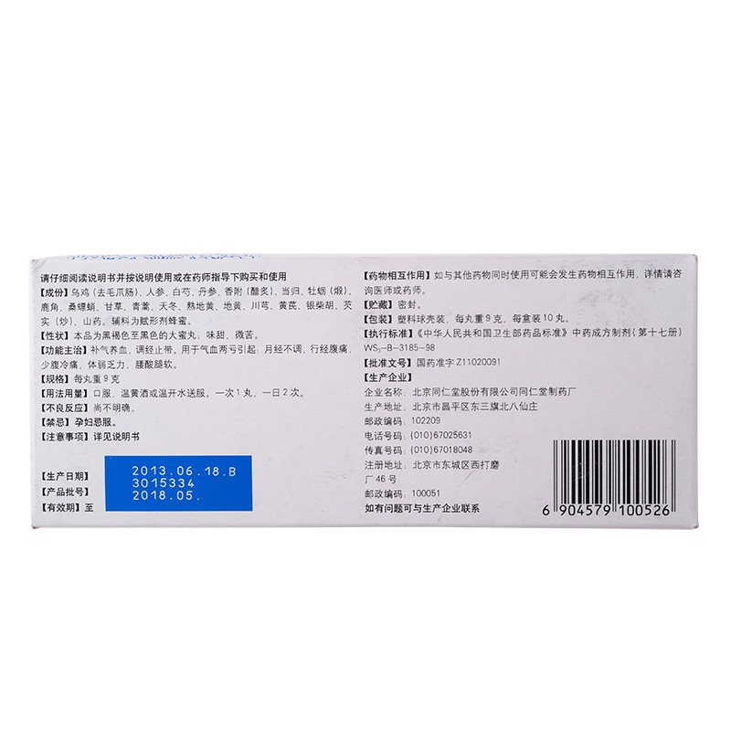 乌鸡白凤丸(同仁堂)