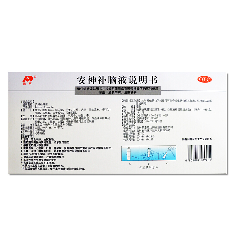 - 商品名称:敖东 安神补脑液 10ml*10支/盒