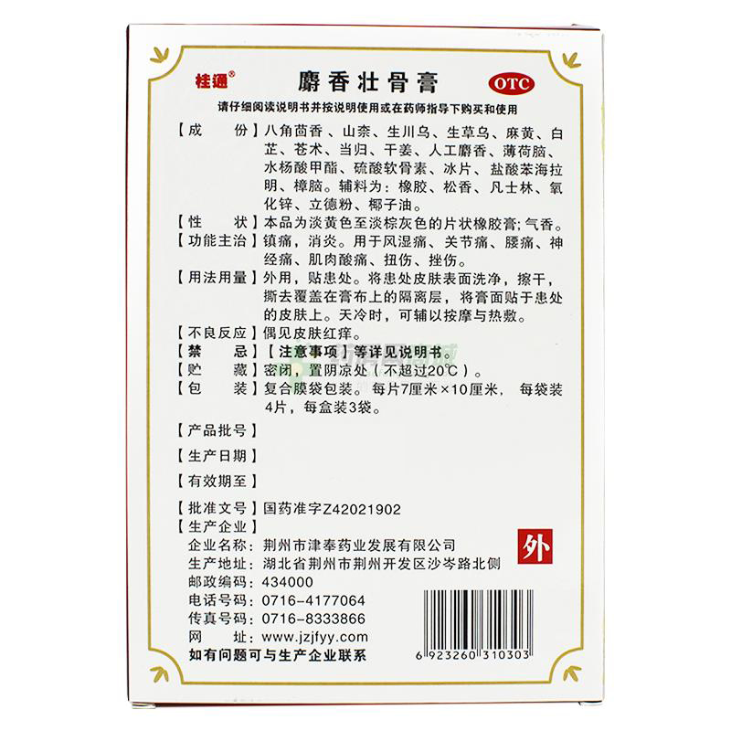- 商品名称:桂通 麝香壮骨膏 7cm*10cm*12贴