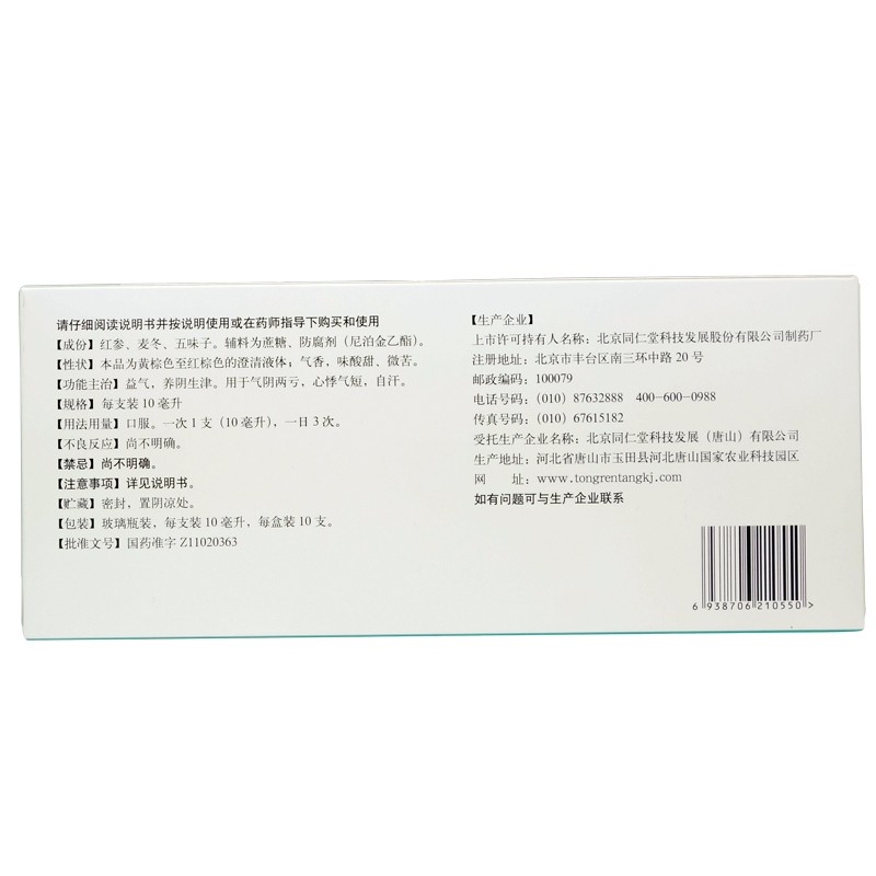 - 商品名称:同仁堂 生脉饮 10ml*10支/盒