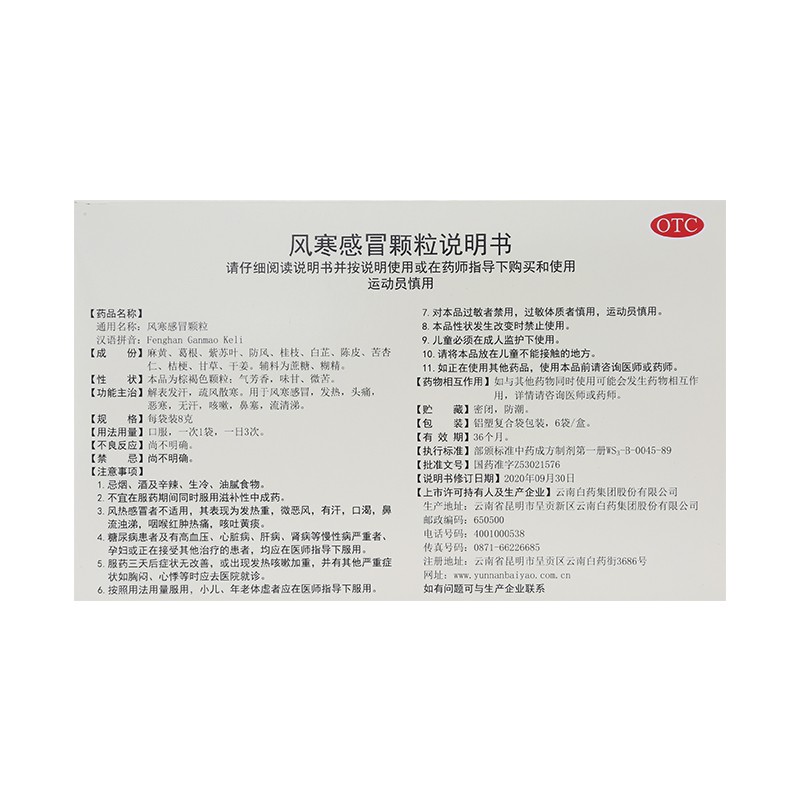 - 商品名称:云丰 风寒感冒颗粒 8g*6袋/盒