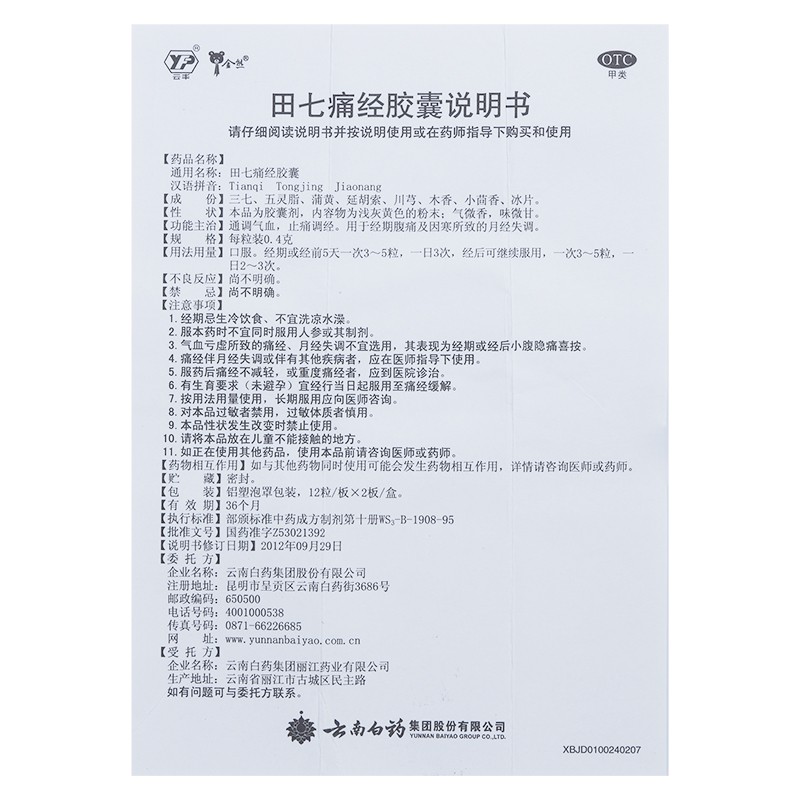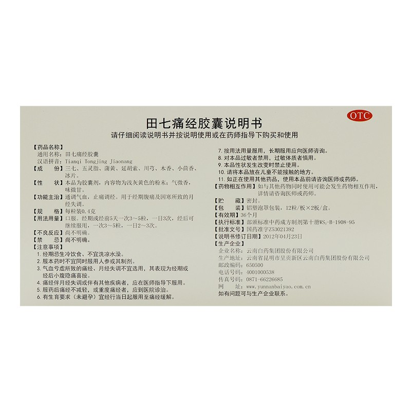 - 商品名称:云丰 田七痛经胶囊 24粒/盒