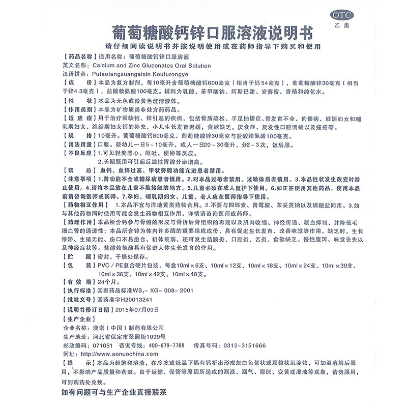 - 通用名称:葡萄糖酸钙锌口服溶液