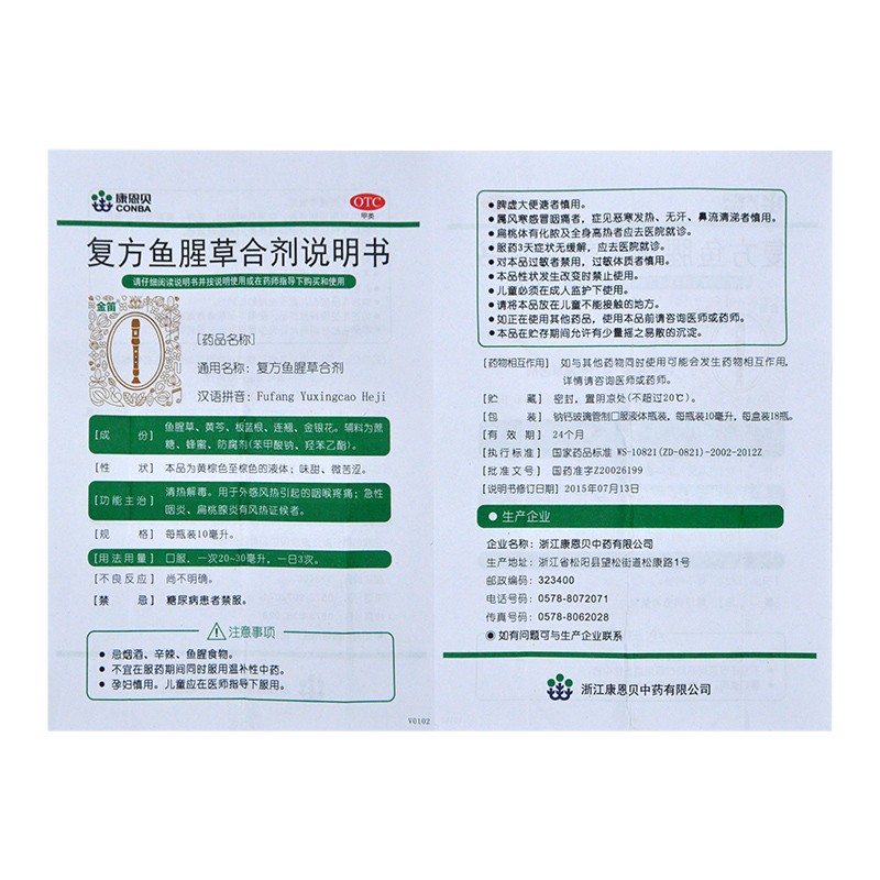 - 商品名称:金笛 复方鱼腥草合剂 10ml*12瓶/盒