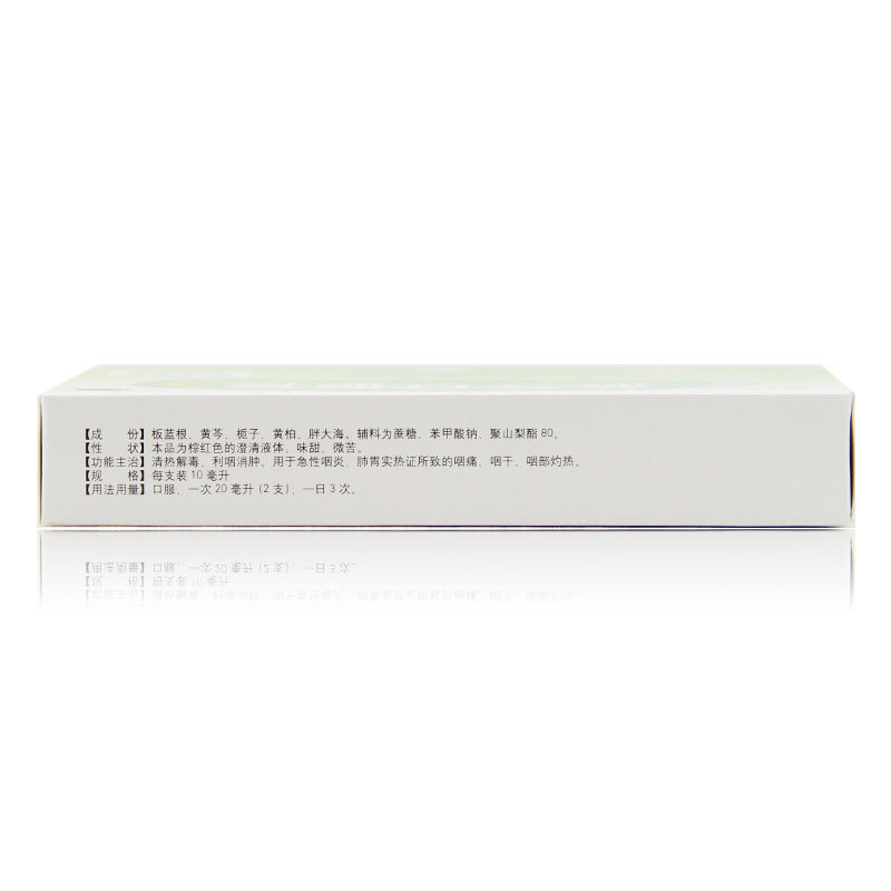 - 适应症/功能主治:清热解毒,利咽消肿。用于急性咽炎肺胃实热证所致的咽痛、咽干、咽部灼热。