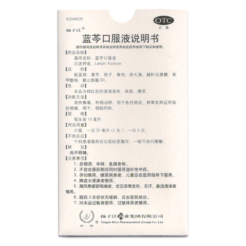 - 商品名称:扬子江 蓝芩口服液 10ml*12支/盒