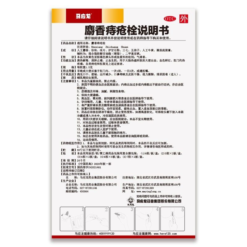 - 商品名称:马应龙 麝香痔疮栓 1.5克*12粒