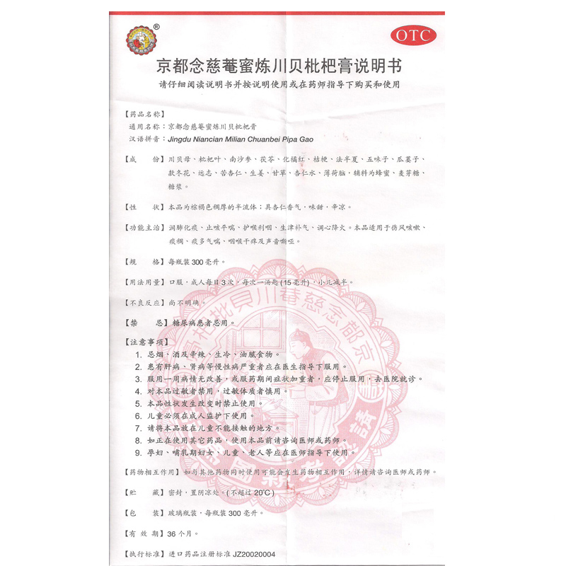 - 商品名称:京都念慈菴蜜炼川贝枇杷膏 300ml/瓶