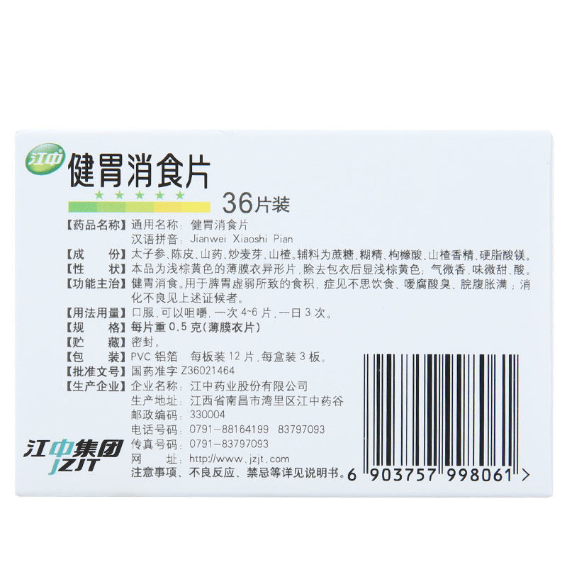 • 商品名称:江中 健胃消食片 0.5g*36粒/盒