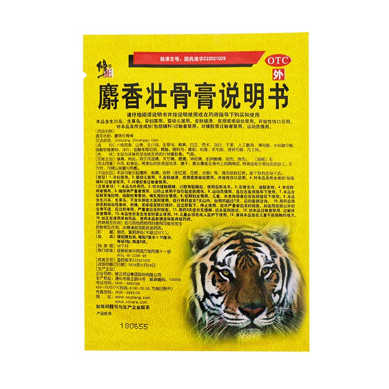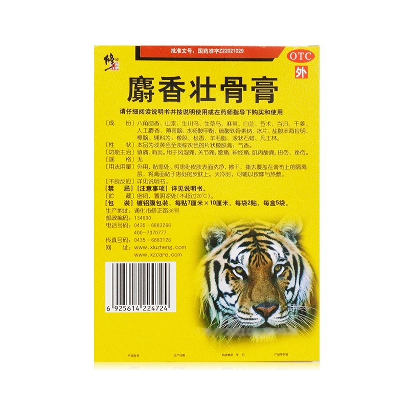 - 商品名称:修正 麝香壮骨膏 7cm*10cm*2贴×5袋/盒