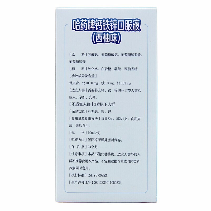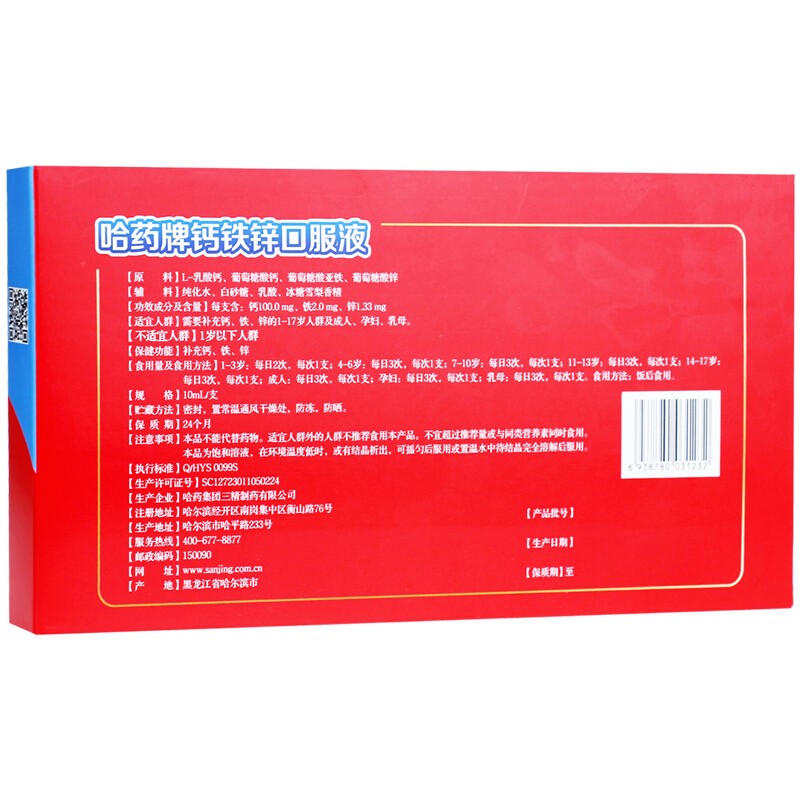 • 商品名称:哈药牌 钙铁锌口服液 10ml*10支/盒