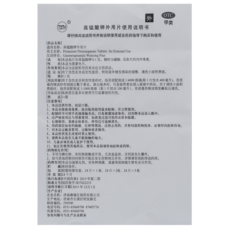 - 商品名称:TXTY 高锰酸钾外用片 0.1g*24片/盒