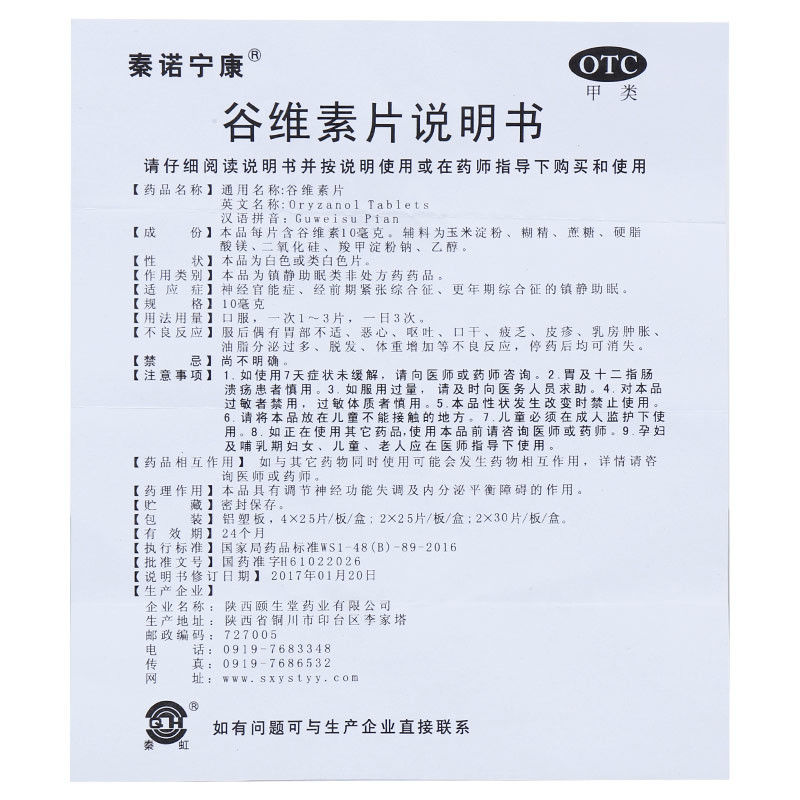 - 商品名称:泰诺宁康 谷维素片 10mg*25片*4板