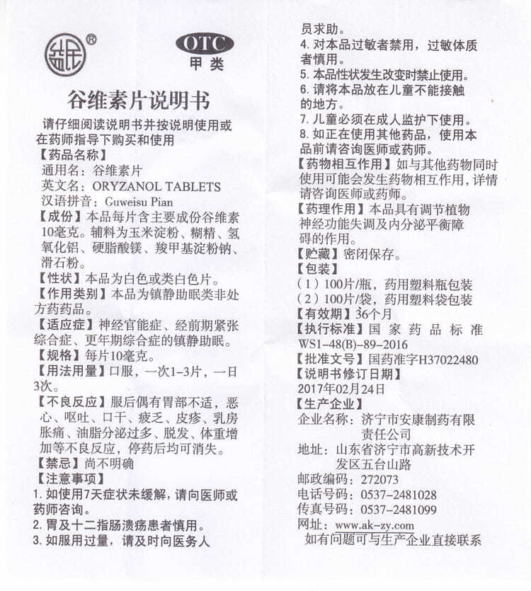 - 商品名称:益民 谷维素片 10mg*100片/瓶