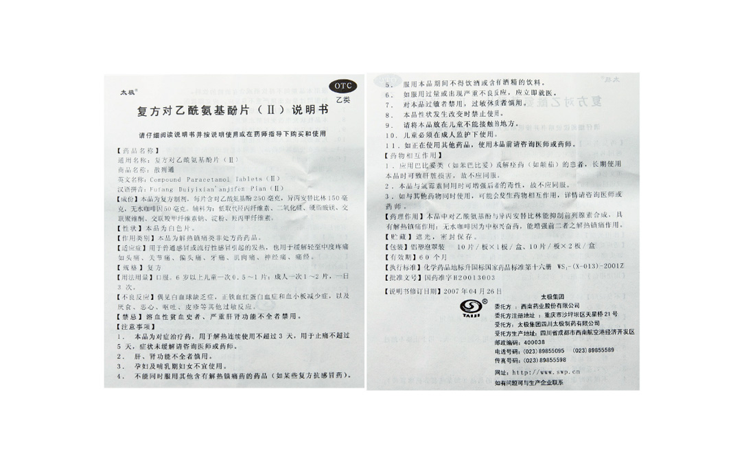 - 商品名称:散列通 复方对乙酰氨基酚片(II)10片/盒