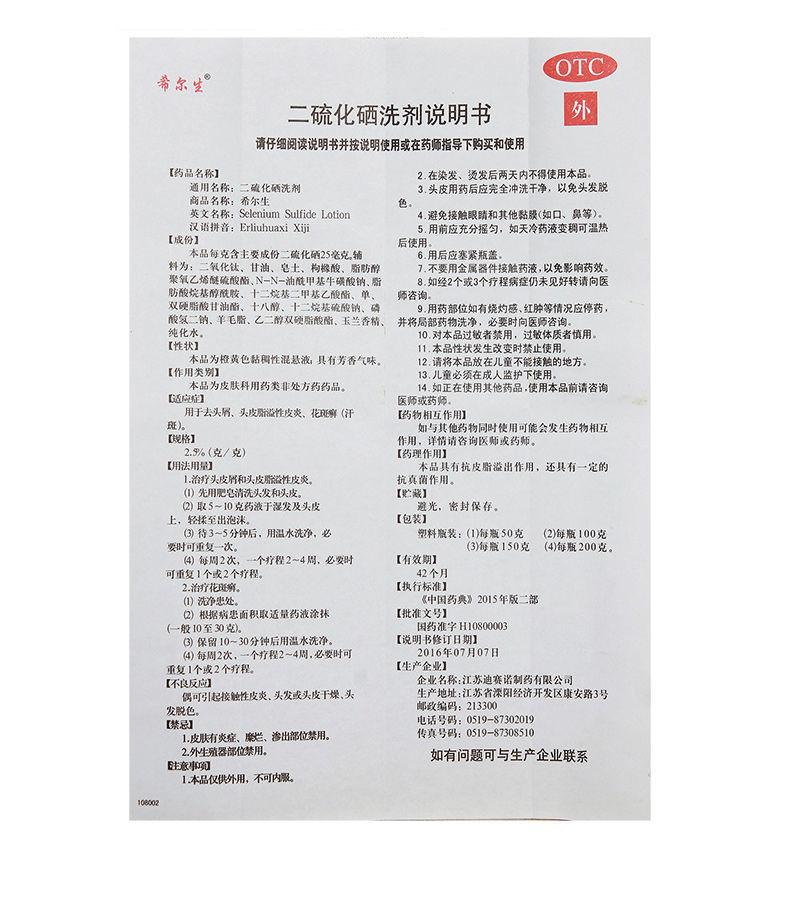 - 商品名称:希尔生 二硫化硒洗剂 100g/瓶