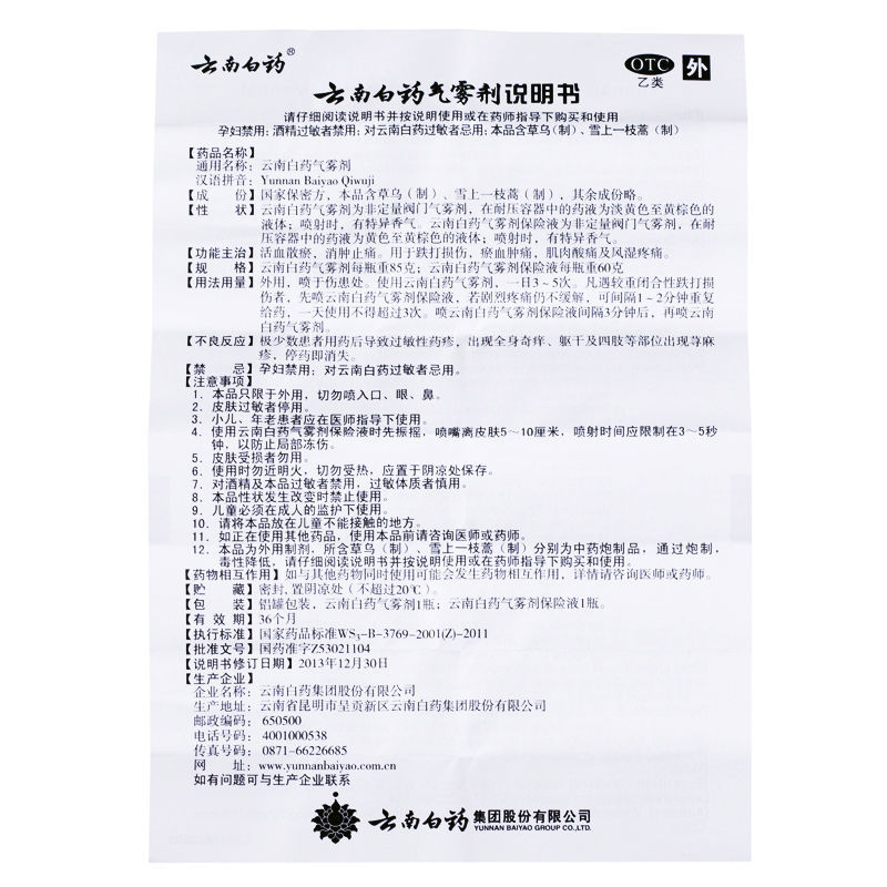 云南白药气雾剂