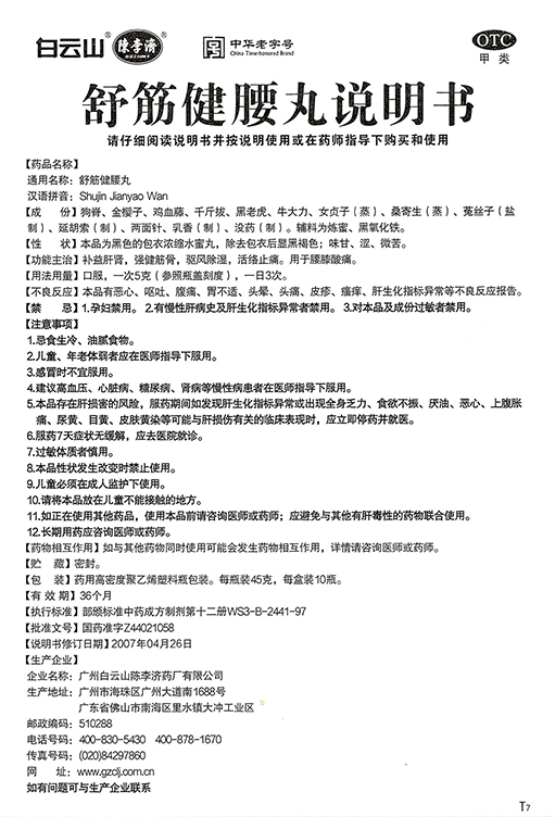 - 适应症/功能主治:补益肝肾,强健筋骨,驱风除湿,活络止痛。用于腰膝酸痛