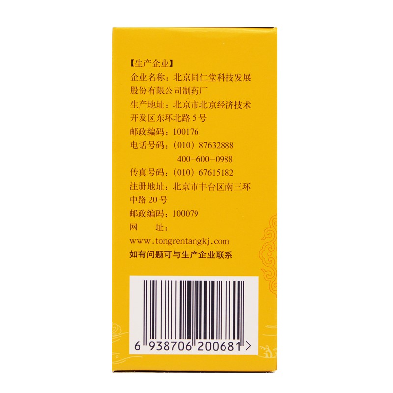 - 生产企业:北京同仁堂科技发展股份有限公司制药厂
