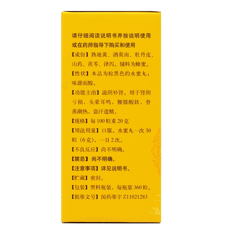- 适应症/功能主治:滋阴补肾。用于肾阴亏损,头晕耳鸣,腰膝酸软,骨蒸潮热,盗汗遗精。