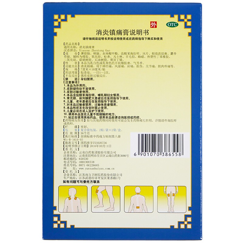 - 商品名称:云南白药 消炎镇痛膏 7cm*10cm*4贴/盒