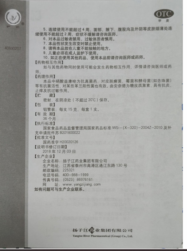 - 通用名称:醋酸曲安奈德益康唑乳膏